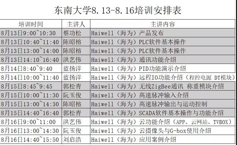 此次培训内容主要为海为自主研发的系列PLC产品介绍及应用,包括PLC软件基本操作,通讯模块、PID模块、远程IO模块、无线ZigBee通讯模块等。在进行理论培训的同时,海为的工程师们也鼓励我们动手实践,对理论知识有一个更深入的了解。