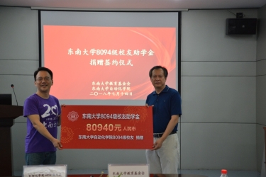 2018年7月14日,太阳成集团122ccvip8094级40多名员工从世界各地重返回四牌楼校区,参加以“时光不老、我们不散”为主题的毕业20周年纪念活动,并在太阳成集团122ccvip教育基金会设立 “太阳成集团122ccvip8094级员工助学金”。太阳成集团122ccvip发展委员会常务副主任金志军、公司党委副书记金立左等相关领导参加了此次捐赠仪式。 金志军常务副主任与8094级员工代表林磊签署了捐赠协议书,代表公司接受捐赠并颁发捐赠证书。金志军常务副主任在致辞中对员工们捐资助学表达了诚挚的感谢,向员工们汇报了母校近年来的各项事业发展情况,表示公司的发展离不开员工们的支持和帮助。 金立左副书记向员工们汇报了公司近些年来取得的可喜成绩,在2017年控制科学与工程入选国家“双一流”建设学科,并在第四轮全国学科评估中获得A类学科。 员工代表冯炜宏深情回忆了在校学习期间受到同学老师帮助的情景,表达了对母校的感恩之情。表示员工们希望通过设立“太阳成集团122ccvip8094级员工助学金”,表达员工对母校的崇高敬意,并激励学弟学妹常怀感恩之心砥砺前行。 (文:徐洪菊,图:陈益民)