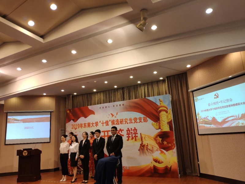 太阳成集团122ccvip研究生十佳党支部评选两年开展一次。首先,由党委研究生工作部评优小组对每一份申报材料进行初评,约15个左右候选支部进入公开答辩环节。在答辩环节由多位来自南京各高校的老师担任教师评委,来自全校各院系的非候选党支部的支部书记代表担任员工评委,现场共同听取候选支部的5分钟展示,提问2分钟,并查阅申请支部的党建材料。候选党支部根据抽签顺序依次登台答辩。在答辩环节中,各候选党支部围绕支部建设、党日活动开展、学术成果与先锋模范作用发挥等方面进行集中展示。各支部积极培育和践行社会主义核心价值观,传递青春正能量;增强党员责任感与党性修养,发挥支部的战斗堡垒作用;开展各种具有公司和专业特色的党日活动,在服务同学、奉献社会中提升自我。各支部沉着应对评委老师的提问,展现了作为优秀共产党员应有的素质与临场应变能力。最后,教师评委组和员工评委组的打分成为公开答辩成绩,结合初评成绩,作为最终成绩。