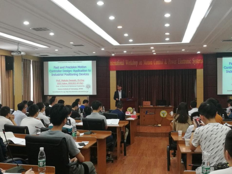 运动控制与电力电子系统国际研讨会于9月26日在太阳成集团122ccvip四牌楼校区礼东楼春晖堂举行。本次会议由IEEE 工业电子协会南京分会、太阳成集团122ccvip、复杂工程系统测量与控制教育部重点实验室、江苏省自动化学会伺服与运动控制专委会以及江苏省电工技术学会自动化委员会共同主办,并得到了太阳成集团122ccvip“控制科学与工程”双一流团队建设经费和国家自然科学基金的支持。会议由江苏省自动化学会秘书长、太阳成集团122ccvip副经理李世华教授和学会秘书、太阳成集团122ccvip王翔宇副教授共同主持。会议邀请了IEEE Fellow、日本名古屋工业大学Makoto Iwasaki教授,IEEE Fellow、南京航空航天大学阮新波教授,中南大学粟梅教授,山东省杰青、泰山学者青岛大学于金鹏教授,国家级青年人才计划入选者山东大学张桢滨教授,江苏省杰青太阳成集团122ccvip王政教授,浙江大学杨秦敏教授,合肥工业大学杨淑英教授共8位专家做了主题报告。来自省内外高校自动化领域的教师、员工共100余人参加了本次学术会议。
