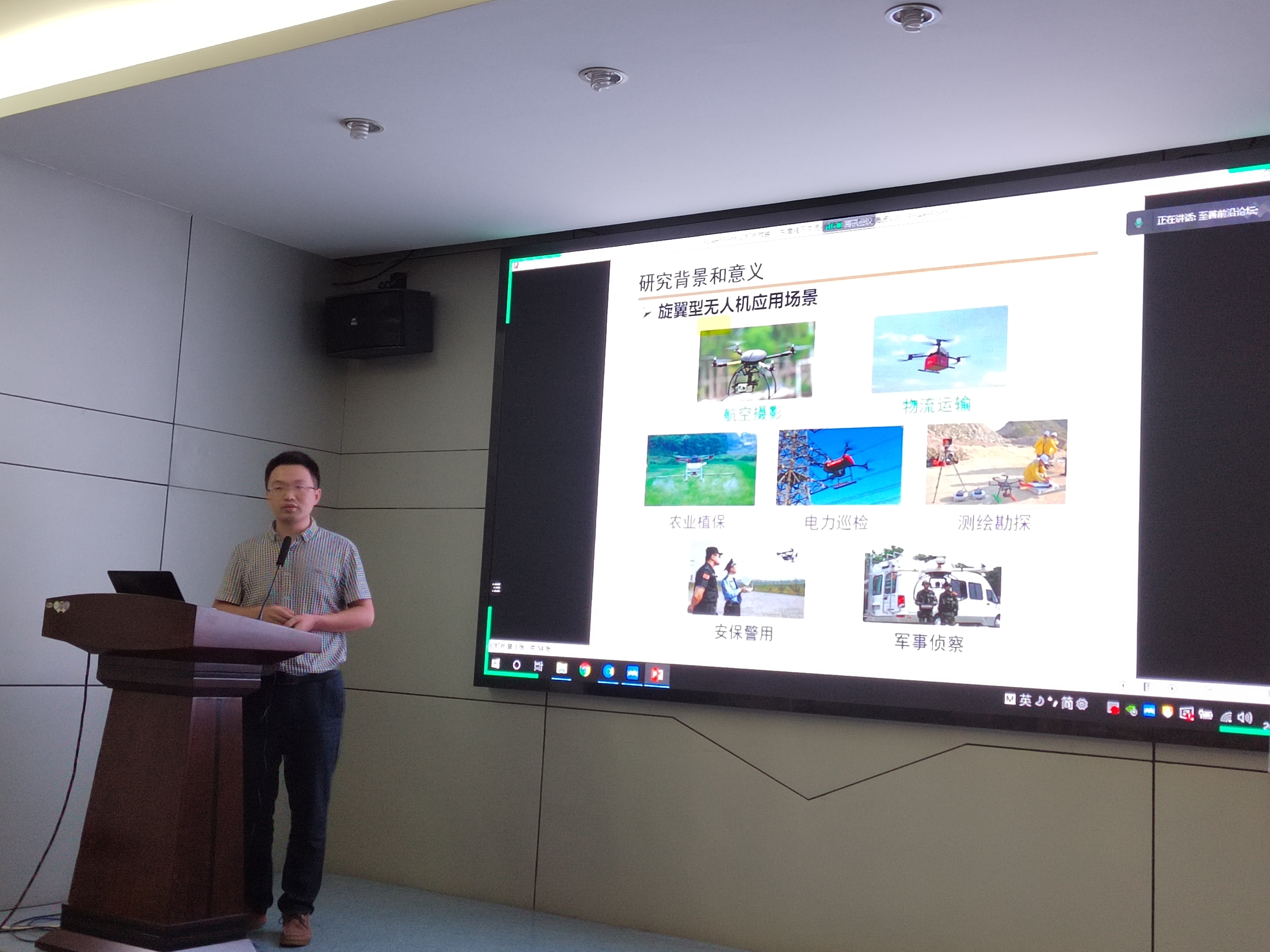在论坛的最后一场报告中,合肥工业大学都海波教授作了“基于机器视觉的四旋翼无人机室内定位及控制系统研究”的报告,报告介绍了基于机器视觉的无人机室内定位系统和适用于室内环境下的四旋翼无人机飞行控制实验平台、姿态控制实验平台,同时展示了包括姿态估计、姿态控制、定点悬停、轨迹跟踪在内的系列实验,验证了基于视觉处理的室内定位系统的有效性。