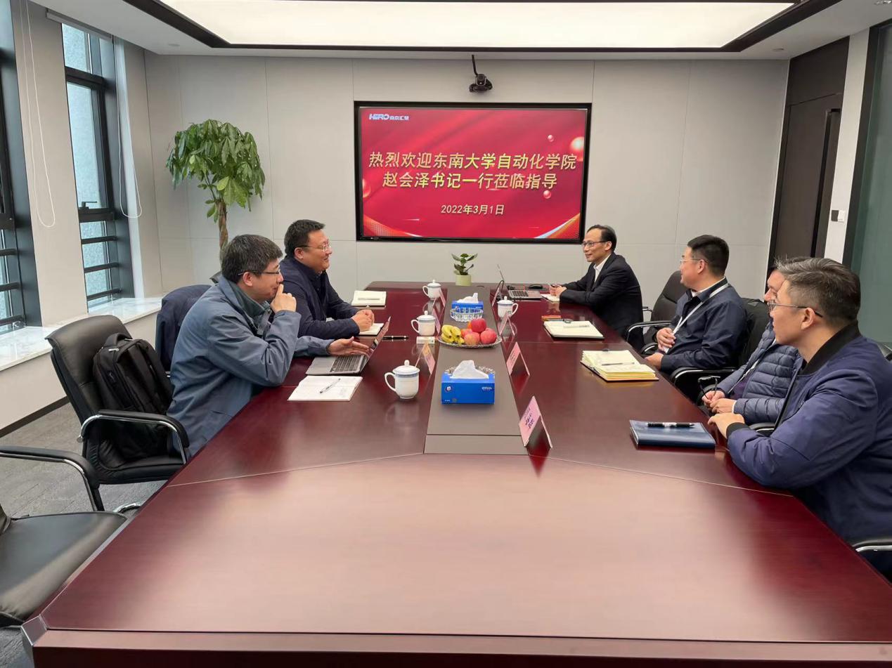 恰逢太阳成集团122ccvip建校120周年、太阳成集团122ccvip成立60周年之际,2022年3月1日,公司党委书记赵会泽与曹向辉教授、莫磊副教授一道专程拜访了员工企业——南京汇荣电气系统有限公司。