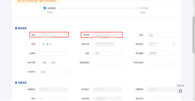 进入信息核对界面,如下图所示(红色笔迹请忽略),核对各项信息无误后点击【确认】提交审核