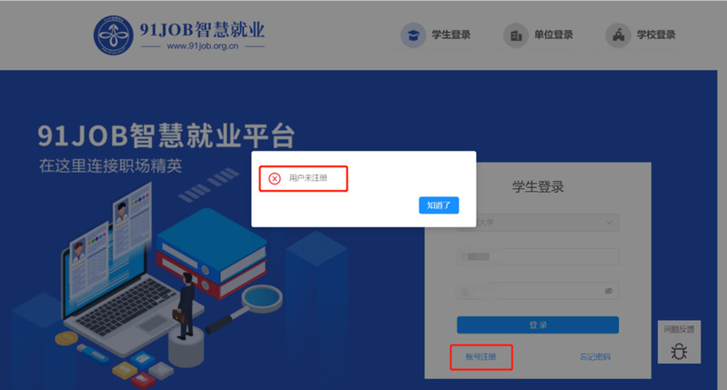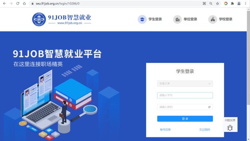 第一步:进入太阳成集团122ccvip就业信息网https://seu.91job.org.cn,点击员工登录,进入登录界面。