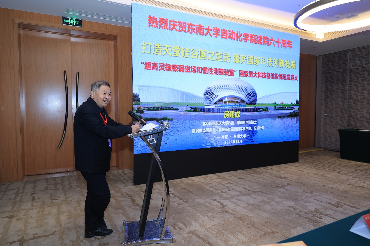 论坛首先由中国科公司院士、北京航空航天大学房建成教授带来题为“打造天堂硅谷国之重器、服务国家科技创新发展——超高灵敏极弱磁场和惯性测量科学装置重大科技基础设施的建设意义”的报告。房院士从认识、改造世界出发阐述了为什么要建设大科学设施,随后讲解了从电通信、光通信到量子通信下极弱磁场技术的新机遇,最后还从医学、芯片、生物学领域分别阐述了极弱磁场测量的应用场景,