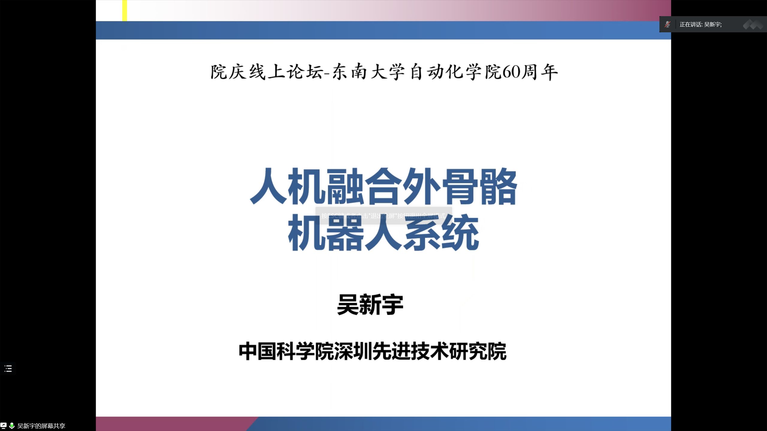 首先,由国家杰青、中国科公司深圳先进技术研究院吴新宇教授带来题为“人机融合外骨骼机器人”的报告。吴教授总结了目前外骨骼机器人的研究意义、应用前景与研究现状,着重指出了未来的挑战性研究方向,并从外骨骼机器人步态规划、多模态信息融合、柔性外骨骼机器人、自平衡外骨骼等方面介绍了团队的先进研究成果。