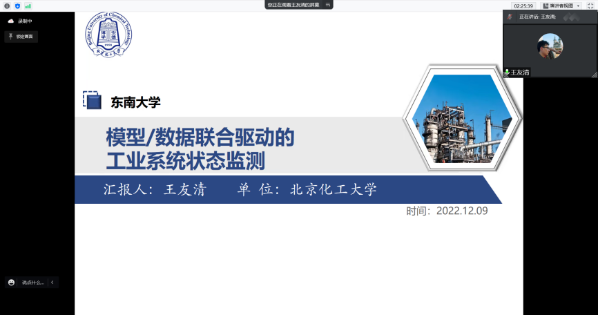 在论坛的第四场报告中,国家杰青、北京化工大学信息科学与技术公司经理王友清教授作了题为“模型/数据联合驱动的工业系统状态监测”的报告,提出同时利用机理模型和实验数据联合驱动的状态检测方法,结合课题组在二维系统故障和质量相关多元统计方面的最新研究成果展示了广阔的应用前景。