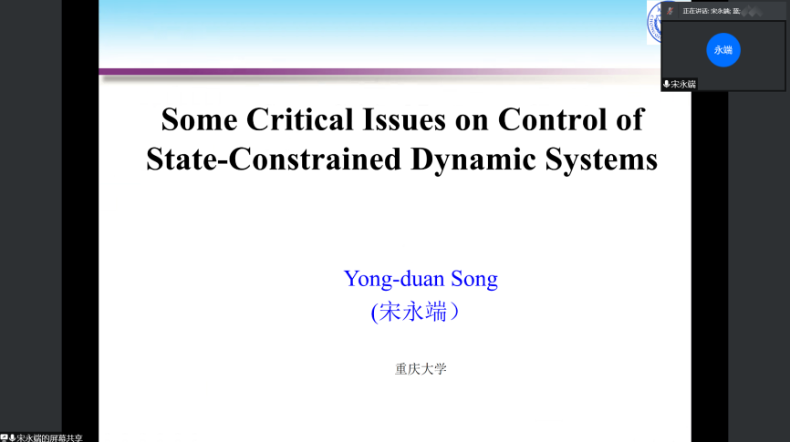 在论坛的第一场报告中,国家高层次专家、重庆大学人工智能研究院经理宋永端教授作了题为“Control of Nonlinear Dynamic Systems under Various Constraints”的报告,总结了目前非线性系统在应用中需要考虑的各种约束,介绍了受约束系统典型的控制设计方法以及近期的发展情况,并重点指出了几个未来潜在的研究方向。