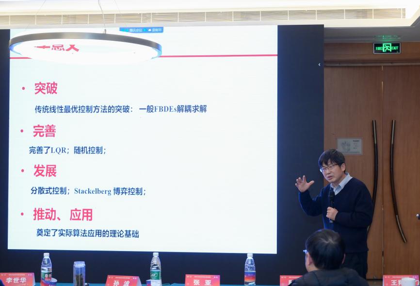 在论坛的最后一场报告中,国家杰青山东科技大学电气与自动化工程公司经理、山东大学张焕水教授讨论了“线性最优控制的挑战、进展及应用”,回顾了LQ控制的发展与挑战,探究了问题的机理,提出了系列基本问题的解决方法,包括非正则LQ控制、时滞系统随机控制、分散控制等。