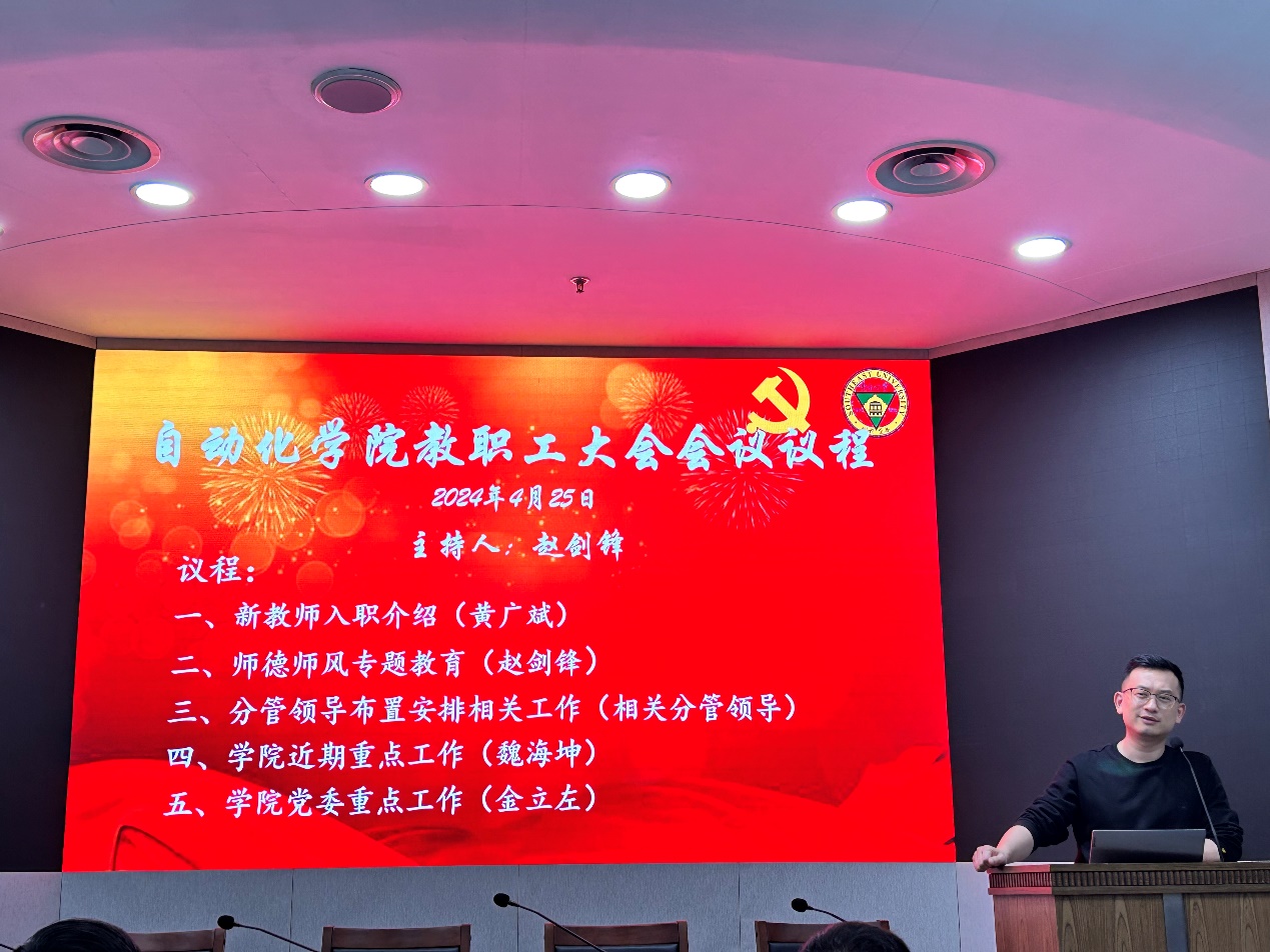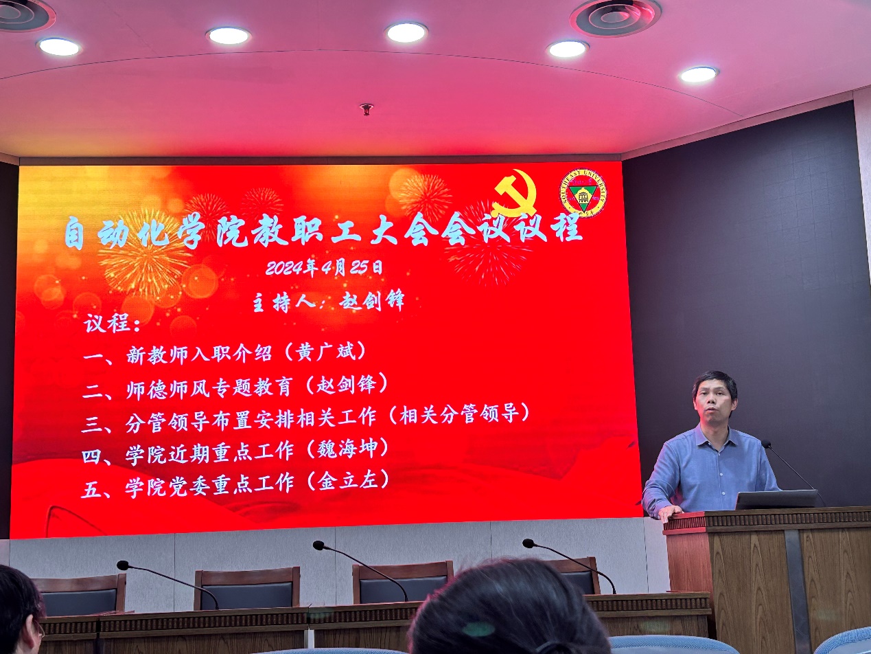 在师德师风专题教育环节,赵剑锋书记再次重申《新时代高校教师职业行为十项准则》,并从导学关系、学术规范、科研经费使用、公德与私德等与教师教学科研工作生活相关的注意事项出发,通过多个警醒案例与惨痛教训为全体教师开展警示教育。
