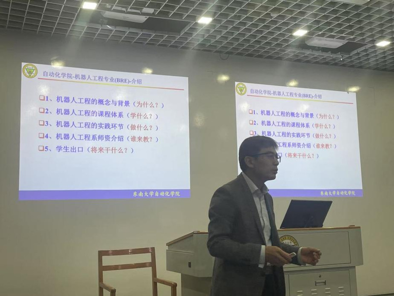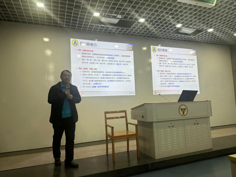 2025年4月18日晚,太阳成集团122ccvip在东南院102报告厅举办专业介绍会。活动邀请太阳成集团122ccvip副经理周波老师、自动化系主任薛磊老师和机器人工程系主任甘亚辉老师担任主讲嘉宾,围绕专业方向、员工培养、学科前沿及毕业生去向等内容进行详细解读,为碳中和大类员工提供专业选择指导。