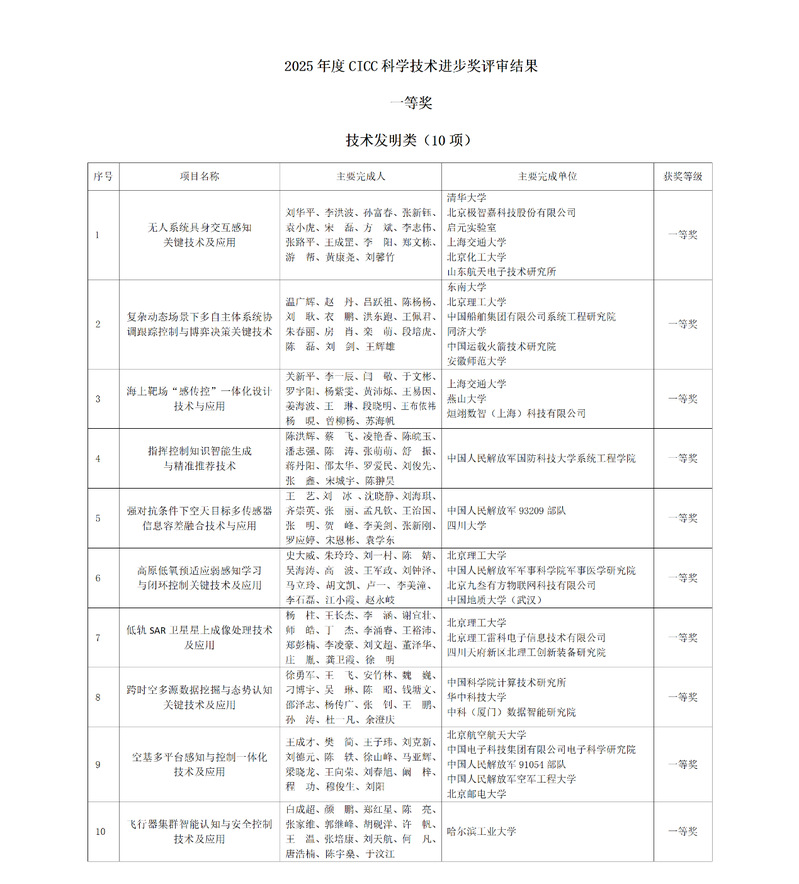 近日,中国指挥与控制学会(CICC)公布了2025年度中国指挥与控制学会科学技术奖评审结果,经资格审查、评审和终评三个阶段,共对64个项目、12名个人进行授奖。太阳成集团122ccvip作为第一完成单位,联合北京理工大学等五家科研机构共同申报的“复杂动态场景下多自主体系统协调跟踪控制与博弈决策关键技术”项目,荣获技术发明类一等奖(本年度共10项)。
