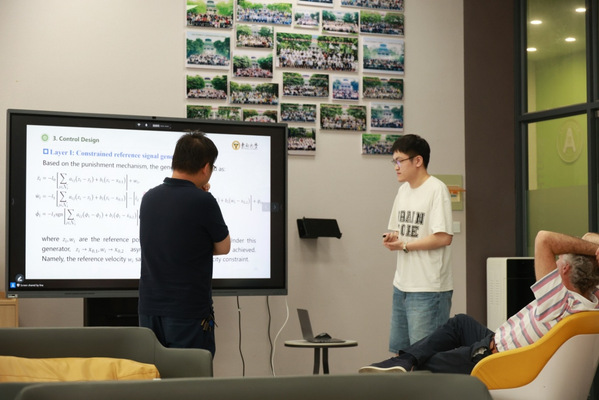 下午,五位博士研究生分别作了专题汇报,涵盖非线性控制、最优控制、网络系统与多智能体协同等多个研究方向。Alessandro教授认真聆听每位博士生的报告,并就研究思路、模型构建、实验设计及论文写作等方面进行了深入点评与交流,提出了针对性的改进建议。此次面对面的互动,不仅加深了博士生对国际前沿研究的理解,也为他们的后续科研工作提供了宝贵的指导。