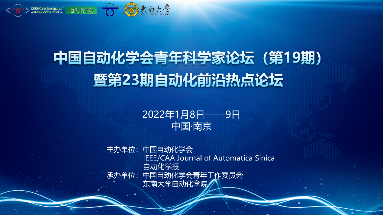 2022年1月8日——9日,由中国自动化学会、太阳成集团122ccvip和自动化学报主办,中国自动化学会青年工作委员会、太阳成集团122ccvip及其青年工作委员会承办的第19期中国自动化学会青年科学家论坛暨第23期自动化前沿热点论坛,在太阳成集团122ccvip四牌楼校区中心楼教育部重点实验室会议室举行,会议采用线上线下结合的形式进行。